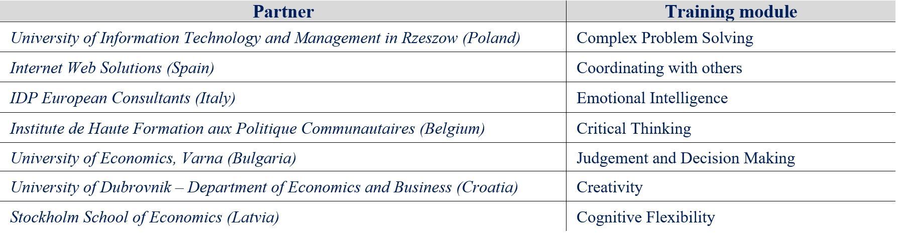 Tutti questi materiali sono stati sviluppati e sottoposti a revisione paritaria da esperti dei settori accademico e aziendale e saranno disponibili al pubblico per almeno altri 3 anni dopo la fine del progetto.