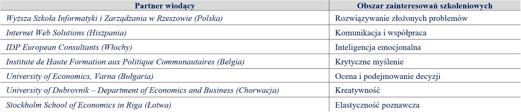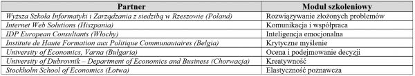 a) wielojęzycznej otwartej platformy edukacyjnej, dostępnej bez konieczności logowania celem szkolenia studentów i trenerów w zakresie najbardziej potrzebnych na rynku pracy umiejętności miękkich. Platforma i jej zawartość są dostępne w 7 językach, z możliwością korzystania z materiałów szkoleniowych zarówno online, jak i offline. Z materiałów szkoleniowych można korzystać w formacie audio, aby zwiększyć ich dostępność dla osób z niepełnosprawnościami. Każdy moduł szkoleniowy zakończony jest testem a użytkownik ma możliwość sprawdzenia swojej wiedzy i pobrania certyfikatu, jako potwierdzenia nabytych umiejętności.